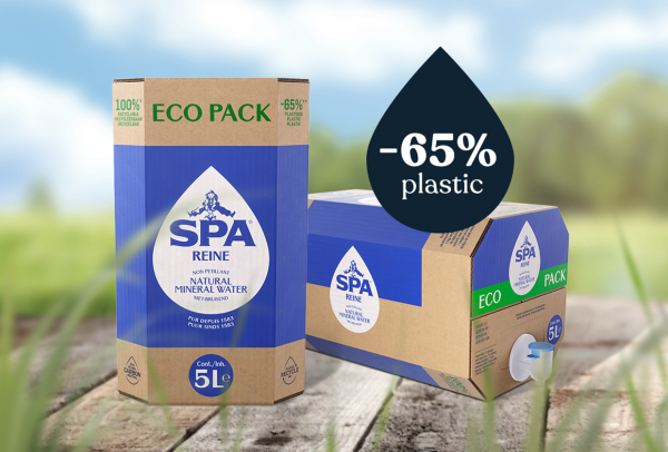 Alle puurheid van SPA® Reine vind je nu terug in ons Eco Pack. Het pack is praktisch, maar ook ontworpen als een duurzamere verpakking. Het is gemaakt van 100% recycleerbaar karton, maar het heeft ook een plastic zak binnenin, waardoor 65%* plastic wordt bespaard in vergelijking met traditionele plastic flessen. Duurzamere verpakkingen zijn voor SPA® een echt maatschappelijk thema, dat ook onze andere producten aangaat. We vertellen je er hier alles over.